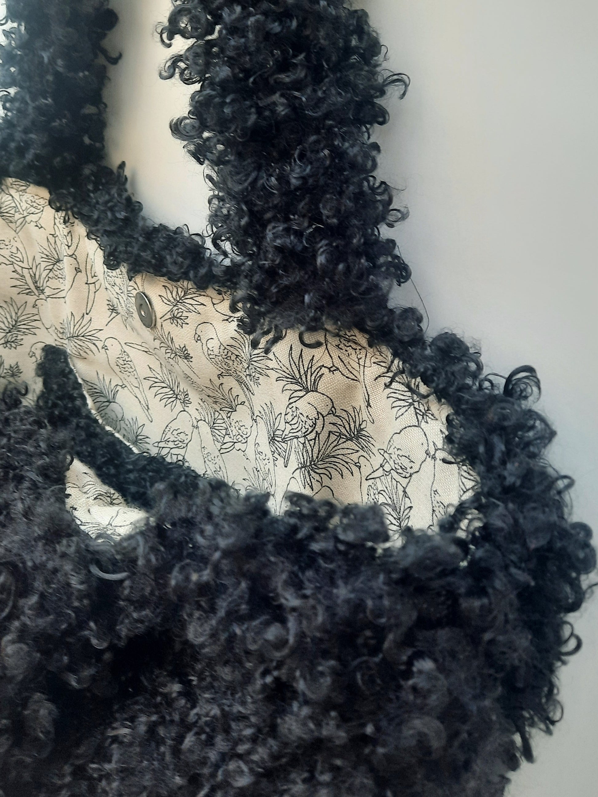 Elegantie en luxe, de buitenkant doet denken aan klassiek astrakan, de binnenkant is verrassend met de kleine vogels.