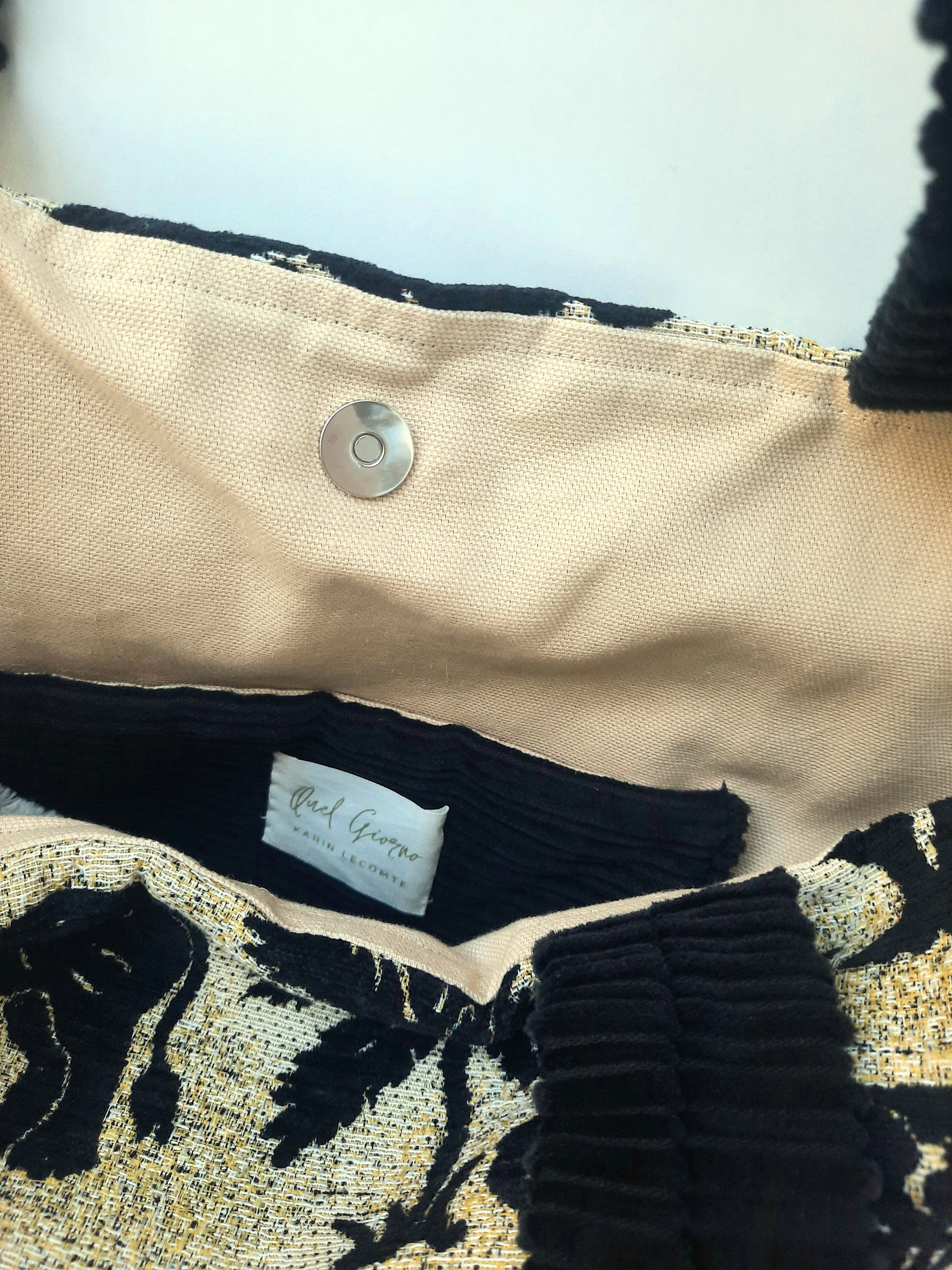 De tas is gevoerd, voorzien van een binnenzakje en een magnetisch slotje.