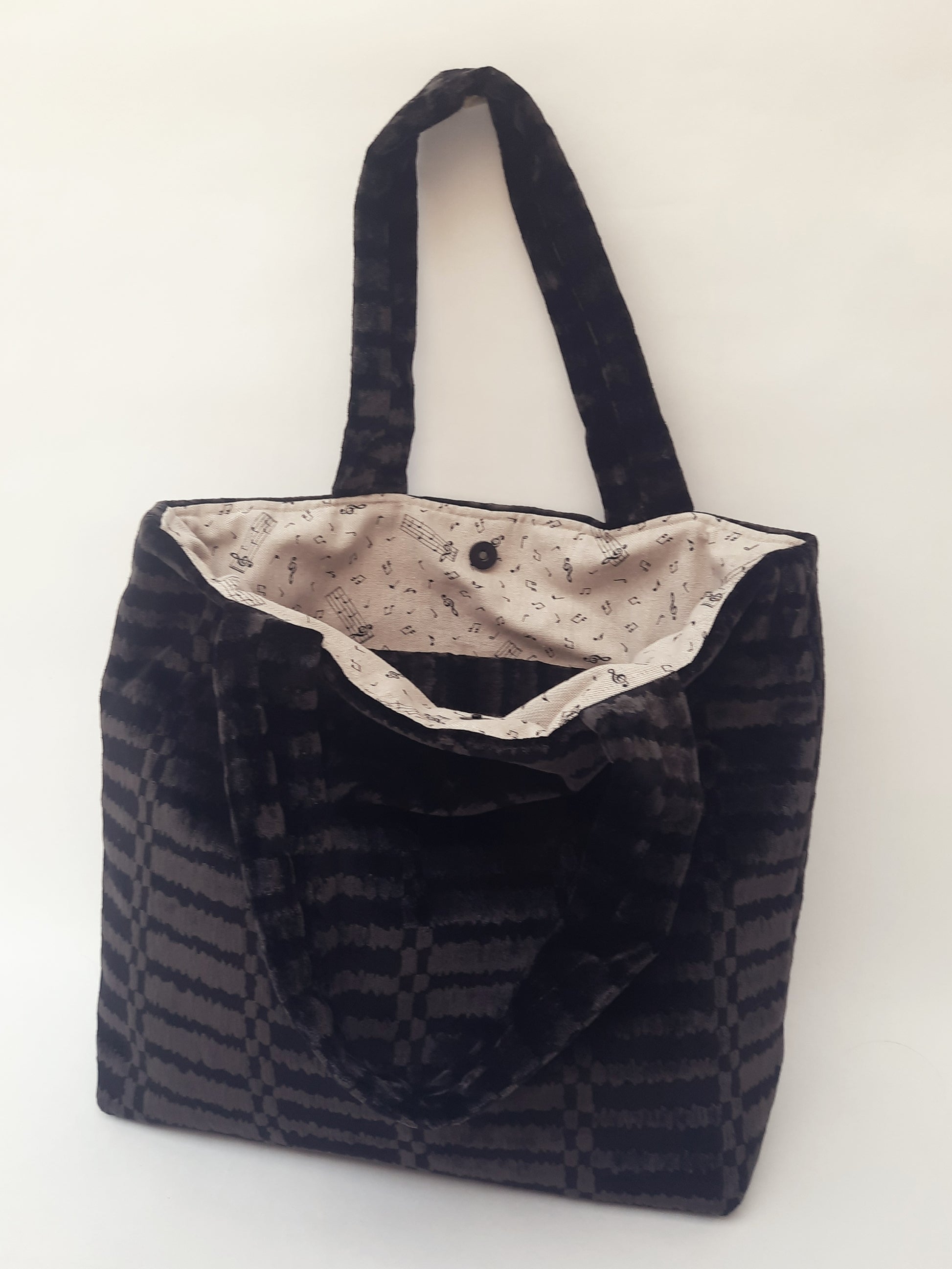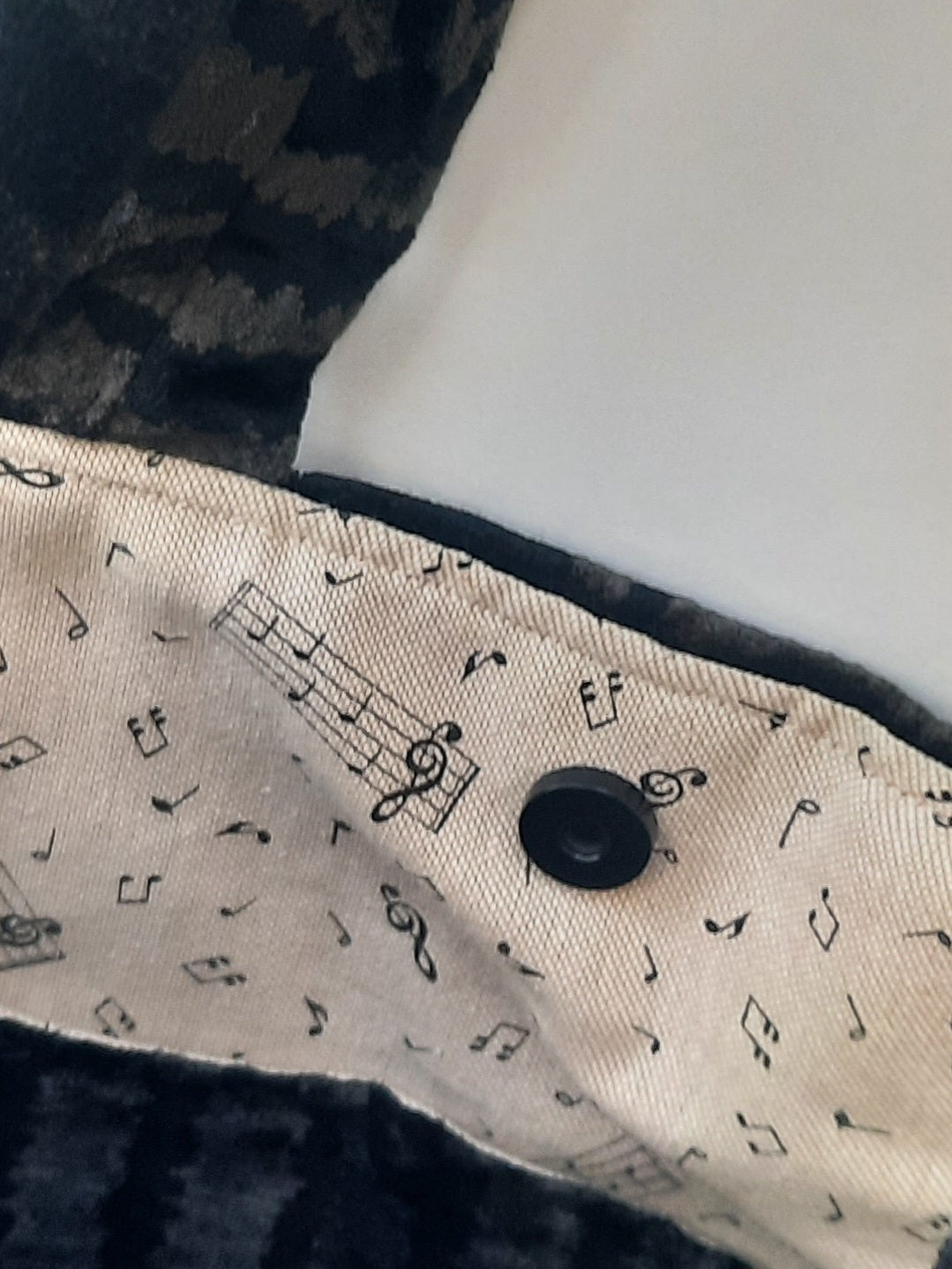 Een fluweelachtige stof met een zachte glans, elegant en tijdloos, met een muzikale afwerking aan de binnenkant. Met deze tas lijkt het alsof je bent weggelopen uit de straten van Milaan.